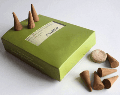 Amber Cone Incense are made from delicate blends of amber, selected natural herbs and spices. These Cone Incenses are useful in state of exhaustion as they stimulate reviving and energizing senses. These are non-toxic, non-addictive and all natural Cone Incenses with natural smell. This cone incense is good for meditation where you seek to discover information. Amber incense is associated with air element.