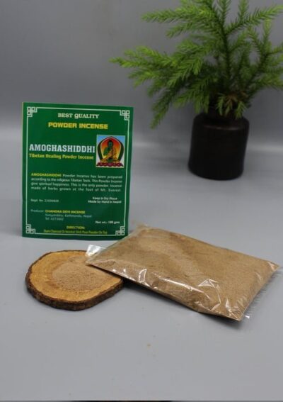 Amoghashiddhi powder incense has been prepared according to the religious Tibetan texts. THis powder incense give spiritual happiness. This is the only powder incense made of herbs grown at the foot of Mr. Everest.