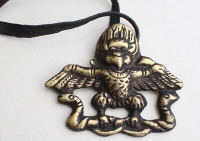 This is a beautifully hand carved GarudaPendant. The pendant can be wear with any kind of chain of your choice. The Garuda is shown as eating an evil snake.