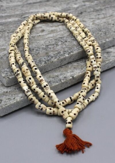 This bone prayer beads mala is made from Buffalo Bone and has been carved to bring the shape of skull. Skull malas are very popular in Asia. The intricate carving takes a lot of time and makes every single mala very unique and powerful.