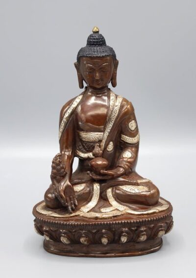 Be the first to review “Copper Medicine Buddha Statue Inlaid Silver Robe”