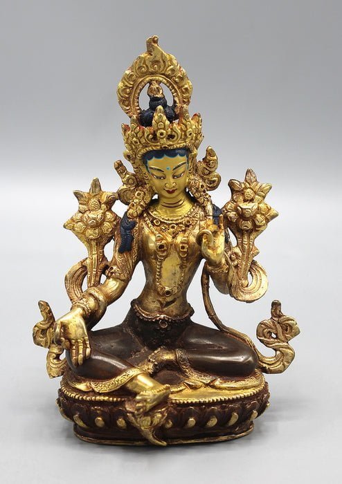 It has been NepaCrafts mission to help and support artists from different walks of life. In this journey, we found this beautiful Green Tara statue. This partly gold plated Tara was made by a sculptor in Patan. With diminishing demands for statues, lowered prices for works of arts due to high competition with machine made statues, the artist was not able to sell his statues on a timely basis and had collections of over 50 statues. And on our mission to uplift the lives of artisans and to help them with sustainable income, we purchase the statue and are bring them to you.
