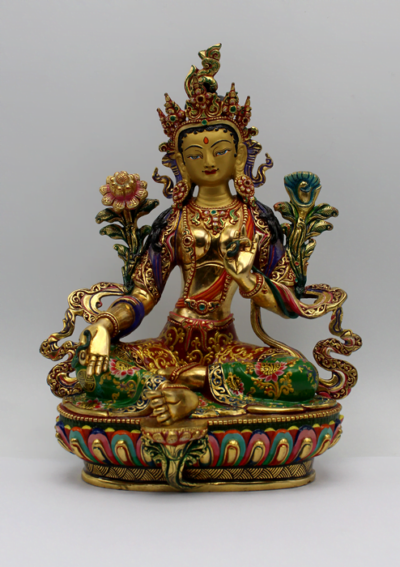The Green Tara mantra is recited for its transformative and protective qualities. Her image, whether in painting or statue form, is placed in homes and temples, creating an environment of compassion and positive energy. Green Tara serves as a source of inspiration for those seeking assistance on their spiritual journey and symbolizes the compassionate and nurturing aspects of enlightenment.