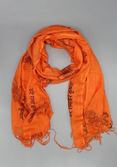 These are pure cotton shawls hand made in Nepal. This shawl can be used while doing meditation. A beautifully printed shawl with the picture of Lord Krishna makes the shawl looks calm and beautiful. The shawl is light weight and in orange color and the printing is done using black color giving each image of Lord Krishna perfectly.