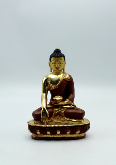 The Partly Gold Plated Copper Shakyamuni Buddha Statue is a captivating sculpture crafted with a copper base and adorned with partial gold plating. It depicts Shakyamuni Buddha, the historical Buddha, known for his teachings on enlightenment and liberation. The statue showcases the serene and enlightened countenance of Shakyamuni Buddha, capturing his profound wisdom and compassion. The combination of copper and gold plating creates a visually striking contrast, adding a touch of sacredness and beauty to the statue. This statue serves as a powerful symbol of the Buddha’s teachings, inspiring devotion, meditation, and reflection on the path to awakening and liberation.