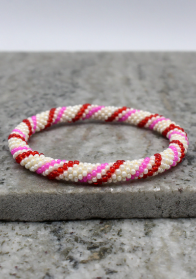 Red White Beads Nepalese Roll On Bracelet has been meticulously crocheted by our women artists. Our women artists have carefully hand-strung this fairly traded Roll On bracelet.
