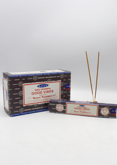 Satya Nagchampa Good Vibes Incense Sticks are crafted by Shrinivas Sugandhalaya to infuse spaces with a harmonious and uplifting fragrance.