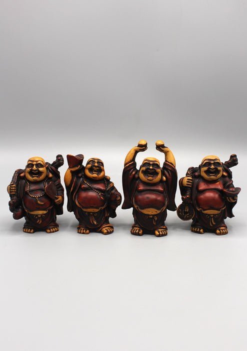 This is a special set of 4 Laughing Buddha resin statues representing different posture and meanings.
