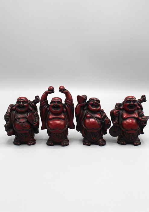 This is a special set of 4 Laughing Buddha resin statues representing different posture and meanings.