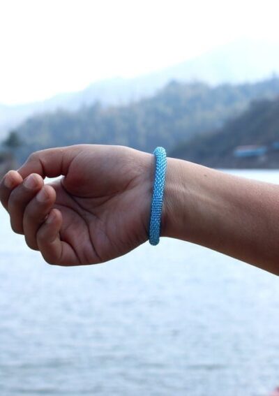 This is a very beautiful and stylish roll on glass beads bracelet handmade in Nepal. Made with the finest quality Czech and Japanese beads, the bracelet stretches as you roll it over your wrist. It fits most wrists as it is adjustable and will roll over around your wrist.